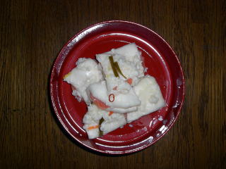| 12/28 | 容器の中に甘酒をしき、かぶを隙間がないように並べます。また甘酒をしき、こんぶ、にんじん、ゆず、赤唐辛子輪切りをちらしていきます。きれいだにゃ〜。 | ![]() |