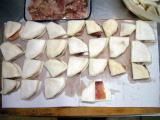 | 12/26 | ・かぶらの準備 各務原市の浅野屋スーパー買い出しに行きます。年に1回この時期におせわになります。 かぶは、皮を厚めにむき、縦4つに切る。さらに割り箸をおいて5等分に切り込みを入れ、またその間に切り込みを入れる。この後5つに切り分ける。全部で120切れです。(右) |