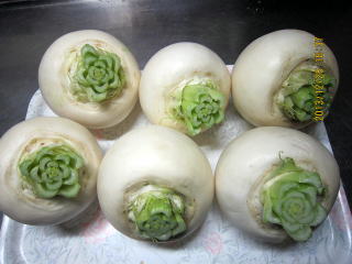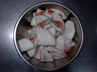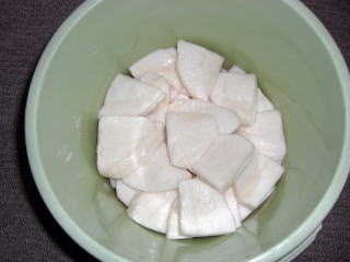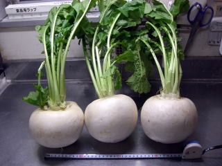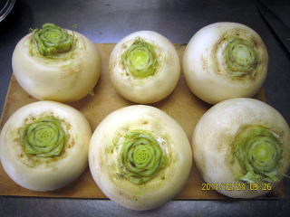 ・かぶ(直径10p)8個、皮をむいて2960g、160切れ分 1296円)・・・・昨年より約1000g少ない