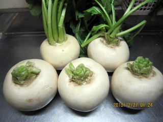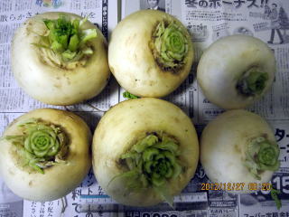 ・かぶ(今回も直径10〜15p)6個、皮をむいて3892g、120切れ分 1140円)