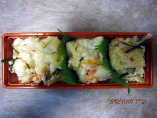 | 1月7日(水) | ・かぶら寿司特使派遣 パックは約300g(3きれ×3種)と350g(4きれ×3種)と400g(5きれ×3種)となっていました。今年は寒い正月でかぶら寿司作りには適した気候でした。 |