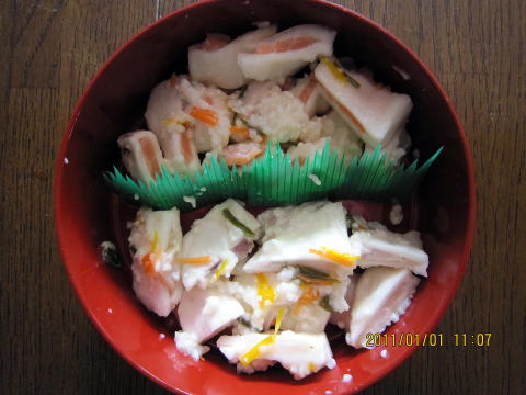 09年元旦、旅立つ前のかぶらずし(左:さけ、右:ぶり)
