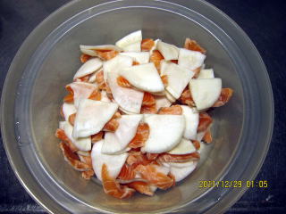 ・かぶ(今回は直径10〜15p)6個、皮をむいて3961g、120切れ 300円(2個分))
