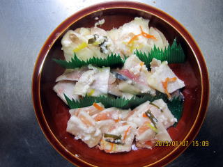 岐阜県美濃地方 岐阜市大洞仕込み上からぶり、さば、トラウトサーモンです。(2014年1月2日蔵出し)