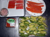 材料(4人分:カニかま巻き2本、サーモン巻き2本))