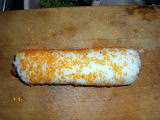 | 6 | ラップで巻いて冷蔵庫で冷やすと固まるそうです。その後とびっこを巻き付けてみました。とびっこが残るのでもったいないので、手順3−@でとびっこをふりかけておけばこぼれずに無駄が少ないと思います。 | ![]() |