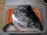 | 1 | 今回は198円でキングサーモンのあらをかってきました。みなさん殆どあらには興味を示しませんので残っていてラッキーでした。特にキングサーモンの名のごとく、刺身にすると脂が良くのりまさに王様です。残りは塩をふったので塩焼きにする予定です。 | ![]() |