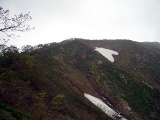 さて山の方はこの時期にしてはまずまずの景色である。下から見たときは上部はガスかと思っていた。標高が高いだけのことがあり、すずしい。しかし梅雨のさなかで湿度は高く汗でびっしょりになった。山頂は一人で写真を撮ったり、木に登って琵琶湖方面を眺めたり、一昨年、山スキーで登った北方に伸びる尾根を見直したりして、自分の時間を満喫することができた。唯一の悔いはカップラーメンを家に置き忘れてきたことである。