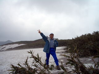 | H 西に望む能郷白山。 | I ほかの登山者が来る前にポーズ。 |