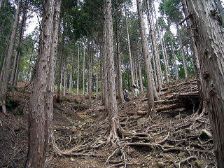 | @ 野鳥の森登山口の向かいです。 | A 株杉があちこちに見られる下部です。 |