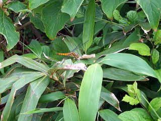 たぶん、駐車場で着替えをしているうちに、蛭が草むらから靴をはって脛へあがったのでしょう。さくら峠でしかっとするので裾をめくると「きゃ〜。ヒッ、ヒル。」がんばって1匹は素手で左足ふくらはぎに吸い付いた蛭を外しました。
