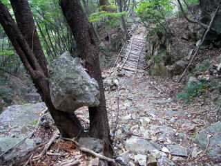 E頂上から骨ヶ平までの一部はこんなにきれいな 道で、よそ見をしていても捻挫しません。 |