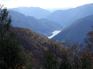 E 標高1000mくらいの稜線から見た上大須 ダム。 |