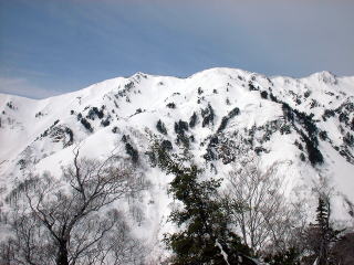 この2週間はすっきりしない天候、不本意な山行であったため、三方岩岳から白谷左俣を気持ちよく滑ろうと計画した。う〜ん、しかし今回はこの時期には珍しい積雪で下部で膝下ラッセル、上部でくるぶしラッセルとなった。 そして白谷は時折、表層雪崩を起こしているのが、馬狩駐車場から見え、白谷滑降は持ち越しとなった。この数年4月の第3、4週頃に来ると、デブリも落ち着き、むしろ雪が減って、クレバスが気になるもの白谷滑降はいつも充実感を与えてくれていたが、今回はそれはかなわないようである。。