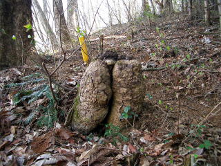 | B木の幹の道祖神のようでした。 | C790mからの花房山とこぶしです。 |