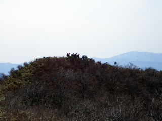 | F団体の登山者が下り始め、山頂に静寂がもどりました。 | G山頂から見る手前ピークです。 |