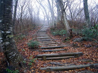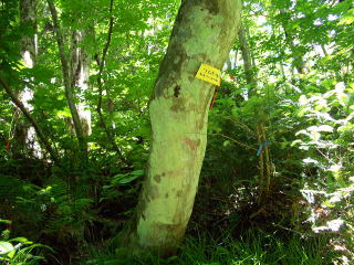 第11リフト終点からはしっかりしたきり開きが有り、まるで東海自然歩道のようでしした。地元の方の好意によるものでしょうね。 |