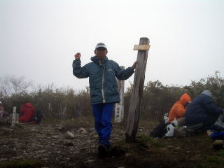 山頂は私を含めて10人です。強風を笹が遮ってくれました。午後からの回復予定は厳しそうです。 |