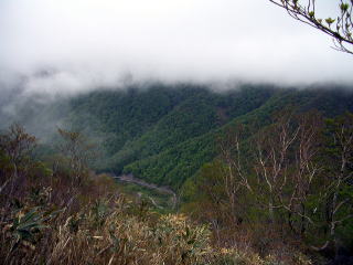 屏風山への登山意欲は、2006年10月に左門岳へいったときに、西方にピラミッドのようなきれいな三角錐の山を見つけた時に始まった。奥も深いとガイドブックにあったし、実際、地図を見ても峠も越えて・・・で隅の方へ置いておいた山だが、下草も少ない、蛭も出ないこの時期を逃してはもったいないと思えてきた。ここで思い切って実行に移した。