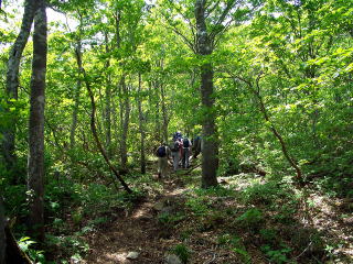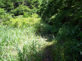 第11リフト終点をめざす。途中で笹のタケノコを少し採りました。タケノコとりに夢中になって山の余韻が薄れてしまわぬように欲たれをいさめました。 |