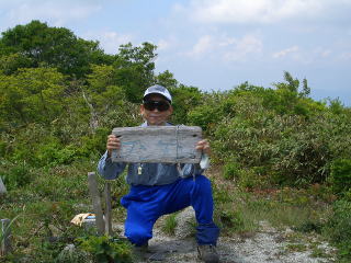 暑い暑い山頂、登りで2人の単独登山者と出合いました。やはり物好きです。この奥までくるとは。しかし今と秋がチャンスです。まだ1週前に登った白山が静かに、我が心を騒がせてくれます。山頂からの展望は絶景です。白山の手前には保月や経が岳も見えています。 |