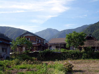 坂内の中心広瀬集落から見る蕎麦粒山です。帰りに丁子山、湧谷山も登山道があることがわかりました。いつか登りたいです。 |
