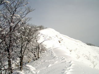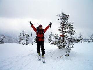 ところで数日前からの寒波で情報によると標高1300m付近でで40〜60センチの新雪と聞いていたので一般の山ではラッセルがきつく午前中に帰宅は不可能であろう。このような条件で山頂が踏むことができ、滑降もそこそこ楽しめないかと考えた。