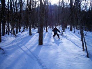| L1000m付近はザラメの快適滑降です。 | M切り開きの畑跡が美しい。 |