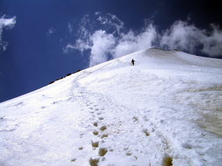 | Dこの直後にヒドンシュルンドがあり苦労します。写真提供:山ごろ氏 | E第2の難所、雪稜地帯です。 |