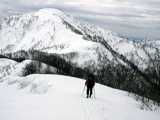 | G薙刀山のここを滑ってきました。 | H薙刀山から野伏ヶ岳へ向かう。 |