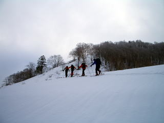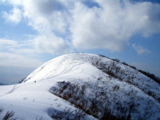 | @雪の少ない今年、皆さん来るところはいっしょ? | A久手牧場からの尾根をすすむ。 |