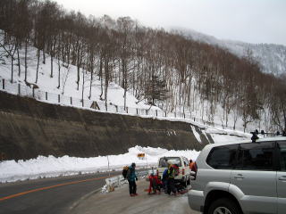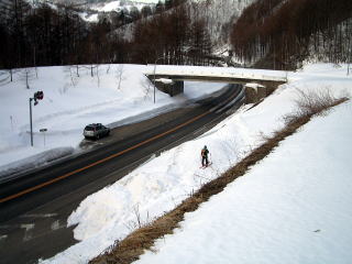 | Hガスの中GPSを友に地形読み超湿雪と格闘する。 | I国道だ、ばんざ〜い。 |