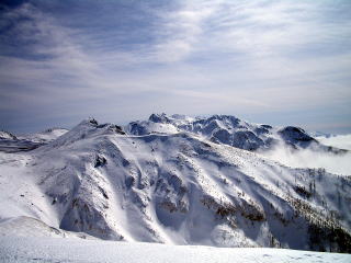 | B稜線は高速道路or膝上ラッセル。 | C山頂からのきれいな斜面、実は表面クラスト。 |