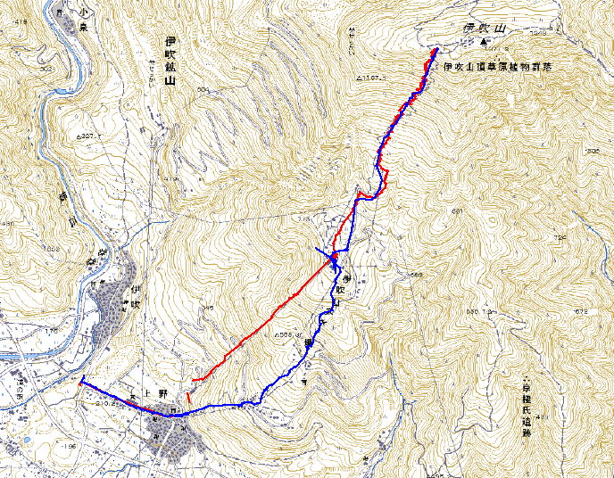 1週間たつと伊吹の雪融けは急速に進んでいる。本日はスキーをもっていったのに、弥高方面から見たとたん無理とわかった。もちろんスキー場は閉鎖している。となれば、3合目まで車ではいることができる。ということで3合目へ。ところが駐車場付近のみ雪が10pほどあったがそれからは皆目なし。ということで兼用靴で登山となった。先週ならスキー登山が可能だったのにと悔しい思いと、スキー無しの身軽なハイクも悪くないなという思いの中、無雪の登山道を足がどんどん進んでいった。