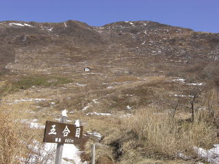 | D暖かい冬山に様変わりに。 | E1合目に向けてとぼとぼ歩きました。 |