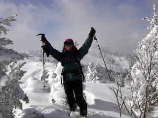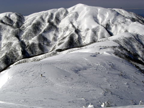 日照岳は私たちにとって3月の山というイメージでしたが、辻さんが岳人に紹介してからは、もっぱらパウダーのと山しての認められるようになってしまいました。特にこの数年の雪不足では1月から雪のある日照りに行くしかないという状況でしょうか。しかし私は3月の羽虫が雪面に動いている頃の日照が、木々も芽吹き好きです。