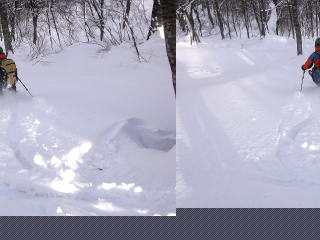 新雪が30p降ったということで出かけました。期待どおり、滑降はまたたくまです。きれいにターンが決まるので体力を消耗しません。年に数度はあっていい雪質です。この2度目の大降りで藪はほぼ消えたようです。