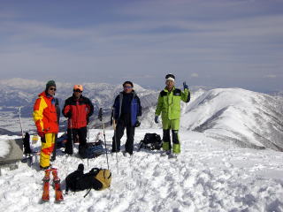 今回の日照岳は、前日のトレースに感謝です。たぶんトレースなしならばもう1時間かかったことでしょう。1500mからはトレースはなく私たちがつけました。その後3パーティー、4人が登ってきました。