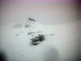 | @7合目からの上部、視界は30m。 | A写真補正で見えてなかった稜線が写っていた。 |