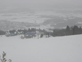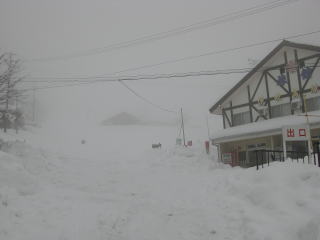 何とか頂上方面へ歩き出すが、頂上売店前付近でホワイトアウトになり、今日はここで終了とする。9合目にもどるが視界は5mほど。前回より悪い。クラスト状況もあり、7合目上までスキーを担ぐことにする。するとこの付近で視界が一時的に広がって3合目まで見えるようになった。勢いよく表面クラストの難しい雪を足をブロックして急いで3合目まで滑った。3合目ロッジ前でラーメンを食べていると視界がまた悪くなり強い吹雪となった。スキー場は2時で終了だそうだ。吹雪のため視界が悪くならないか危惧したが、3合目以下はしっかりあり安心した。また雪は湿雪であるが操作しやすく今日の中で最も楽しめた場面であった。先週より雪は減ったものの1合目から休止状態のリフト下を半分くらい標高差100mほど滑ることができたがその後は、スキー板が悲鳴を上げたので担いで下りた。強風と吹雪の低温の中、必要な装備、山への心構えを再点検させられた伊吹山であった。