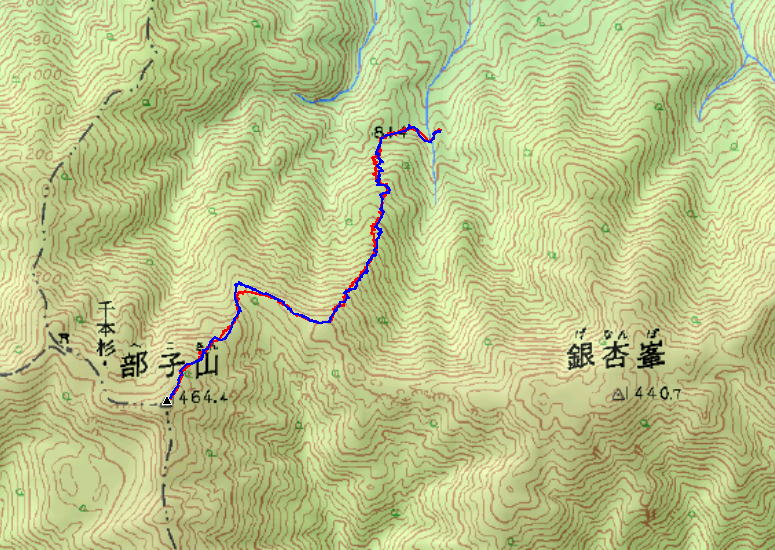 J台地から東へ滑り込んで対岸へ渡ります。GPSで青線が切れた箇所がここです。 |