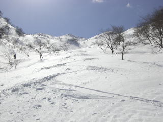 今季最高のスキークルーズができた。この期を逃すとこの界隈の沢はかなり谷割れが出ると予想した。実際この日以降は格段に気温が上昇した。