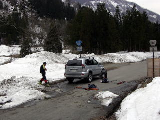 前日の土曜日まで花房山のハイクと決めていたが、土曜日深夜、山あったらんだむさんのHPをみて部子山の雪の多さに驚いた。そして山スキーが十分可能とは。前夜、寝られなかったのは行き先が得心できなかったからだ。私に中で福井県の山スキーは雪が少なくなって難しいだろうとよんでいた。しかしその推測は見事に外れた。林道の除雪が雪山へのアプローチを簡単にしてくれるのだ。その条件にかなうのが部子山であったのだ。ハイクのつもりで7時起床したが、悶々として悩んだ末、部子山山スキーに決心。急きょ山スキーの準備、大野市まで2時間で11時に登り始めればよいともくろみ、岐阜を8:45分に出発する。高速で出発する。実際は125キロ、2時間半かかってしまった。。