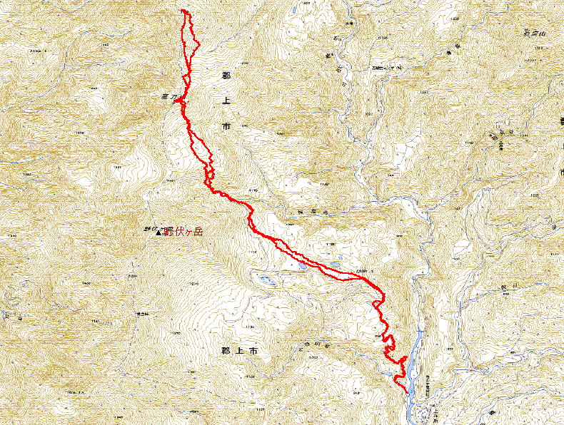 天候が完全冬型、寒気の南下でこれまた厳冬期の装いであった。荘川付近は青空がちらほらだったのが、白川村は鉛色の雲、雪は降り出すし、1400m付近はガスも出てきた。明日が岐阜ケルンの総会なので、今日は天候が良くないことを承知の上で登り始めたがこれほどとは。たぶん野伏ヶ岳あたりでは青空がでているかもしれない。脛ラッセルが続き、1400付近で終了、やはり私のスタイルとしては山名がついている頂に達したいという気持ちが強いことを確認できた。これまでの山からみると三角点の山頂より山名がついている三角点の方が展望がよいと思う。そして最終目的も薄れよう。しかしながら遊び好き鈴木氏の提案で沢滑降は迫力があった。何より膝上の新雪深雪だから重いがやはりパウダーだ。スピードに乗れば浮き上がってくる。急斜面も程よくブレーキがかかる。今回はかかりすぎかな?それでも雪が良くくっついていて、なだれの懸念は少なく、けれどもおどおどしながら沢筋をヒヤー、ウヒャーと叫んで下りていったのであった。