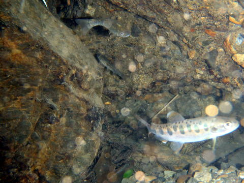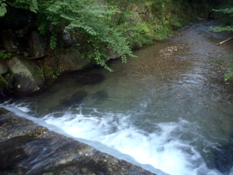 | 2012年7月26日:猛暑日の仕事帰りは水浴びが楽しからずや。通勤路から10分北上するとると水温20度の別世界にアマゴとタカハヤが混棲する。体も心もクールダウン。 | |