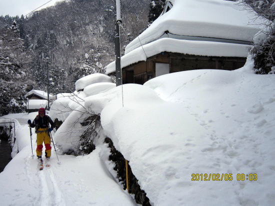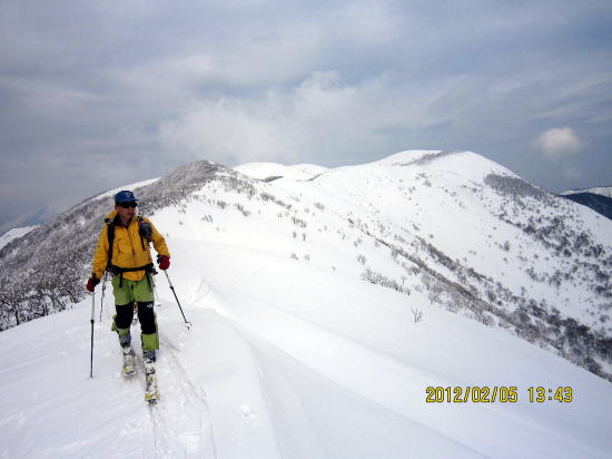 | いやはや、後半は重雪で足はぱんぱん、前日のトレースに登りは助けられましたが滑降では引っかかりました。歯痛か上顎洞の痛みが気になり今ひとつ専念できない山行きでした。(鎮痛剤は必携ですね) |
