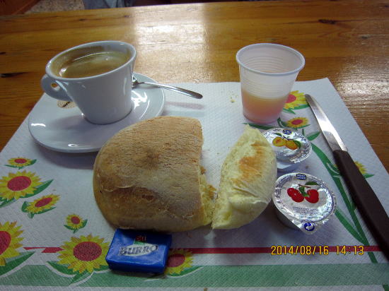| 朝食はいたって簡素、他に小さなデザートもありましたが何しろ安い。19ユーロで朝食付きです。ベッドで眠れて幸せでした。 | いよいよ出発です。 |