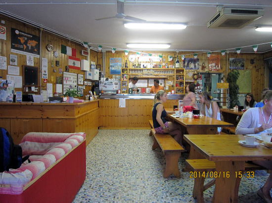 | 日本語あいさつしてくれるホストマザー。昨晩は遅くても歓迎してくれて誠に感謝。思い出に残るYHです。 | コモYH(Ostrllo Villa)のレセプシション兼食堂です。とても家族的です。 |
