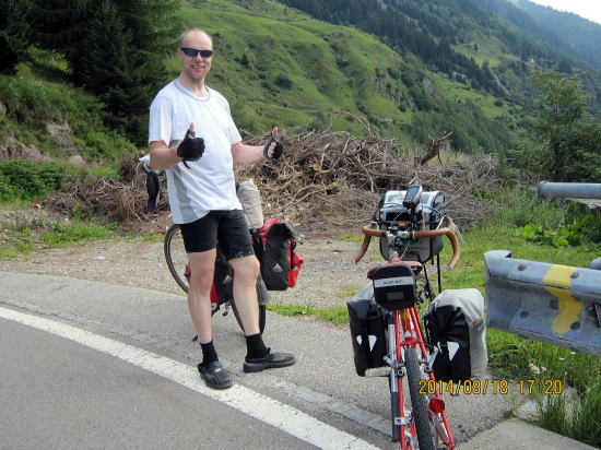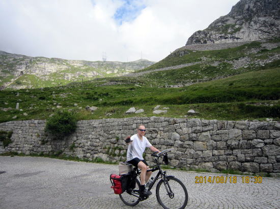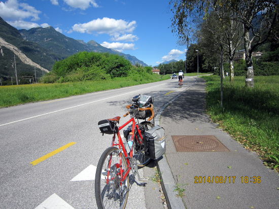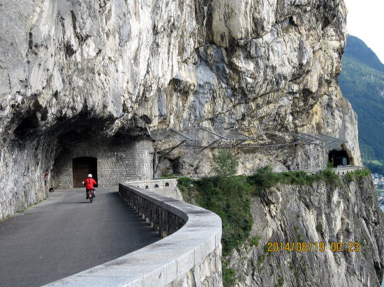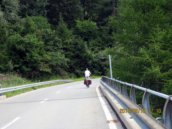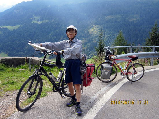 | 自転車は後部のみの18段変速。サイクリング車は、こちらではドロップよりもこのてのハンドルをしばしば見ます。 | イタリア側からは一気に高度を上げるような気配です。 |