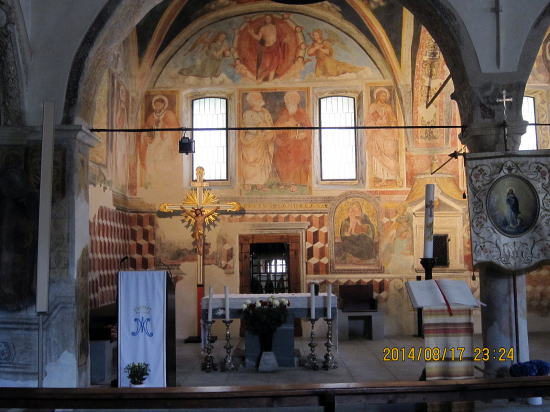 | カソリックのようです。左は説教台でしょうか。パンフがありましたがイタリア語なのでわかりませんでしたが由緒ありげな教会でした。 | ロミオとジュリエットの映画を彷彿させます。様々な墓石です。 |